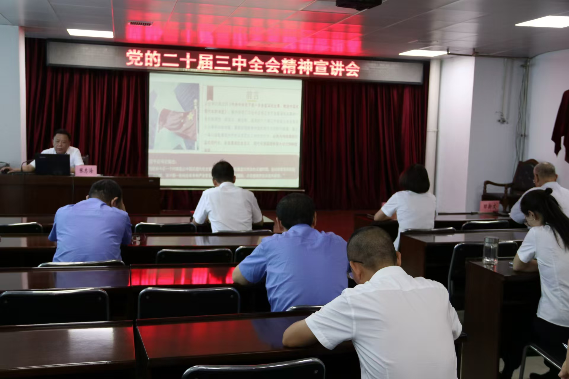 张书记从深刻认识党的二十届三中全会的重大意义;围绕中国式现代化全面深化改革,系统把握《决定》重点内容;全力抓好改革落实,用更多更好的发展成果惠及广大干部职工3个方面,对全会精神进行了详细解读和系统阐释。